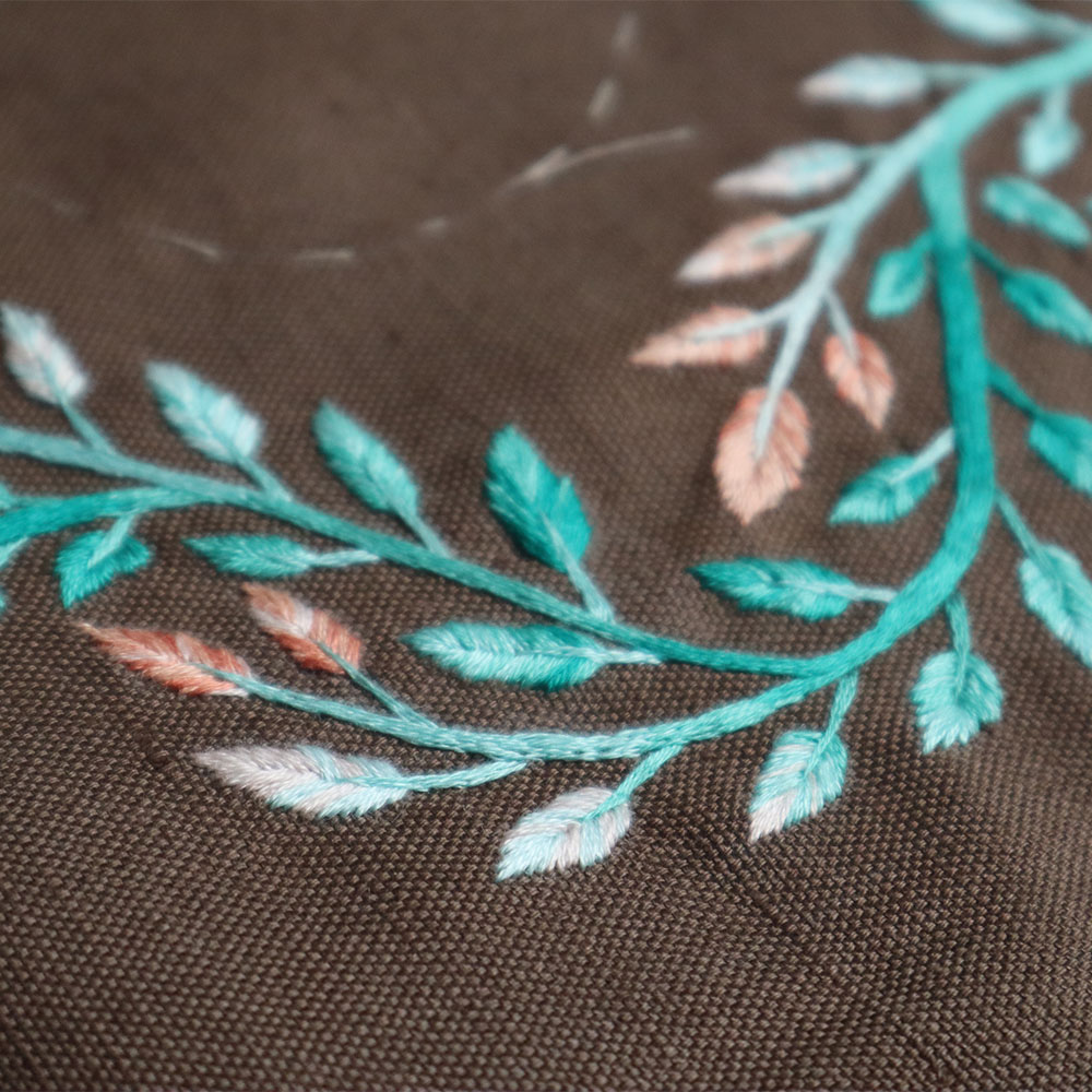 Den Blätterkranz sticken