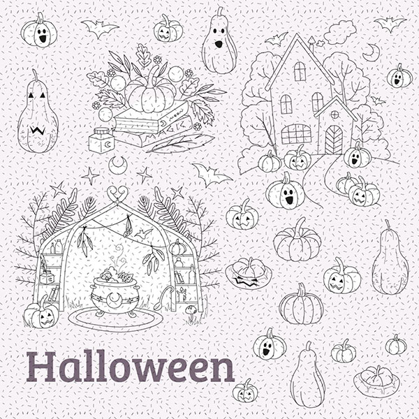 In der Halloweenkollektion sind viele verschiedene Kürbisse und zauberhafte Motive enthalten.